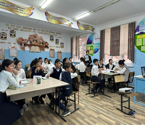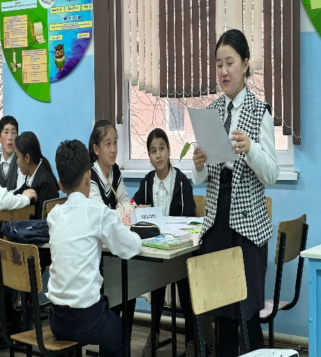 Қазақ тілі мен әдебиеті пән апталығының жоспарына сәйкес 7 «Б» сынып оқушыларына «Мақал сөздің азығы, жұмбақ ойдың қазығы» атты тақырыбында қазақ тілі мен әдебиеті пән мұғалімі Л. Баедилова ашық сабақ өткізді